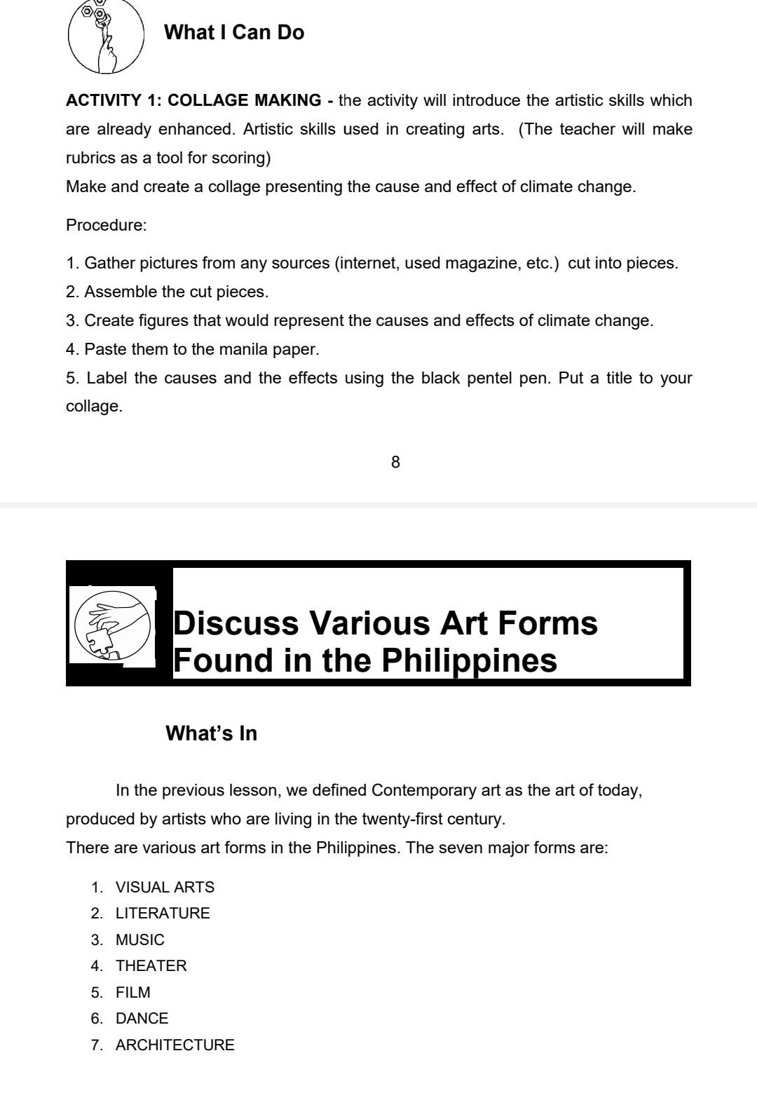 Contemporary Phil Arts Quarter 1 Modules 1 4 Name Studocu